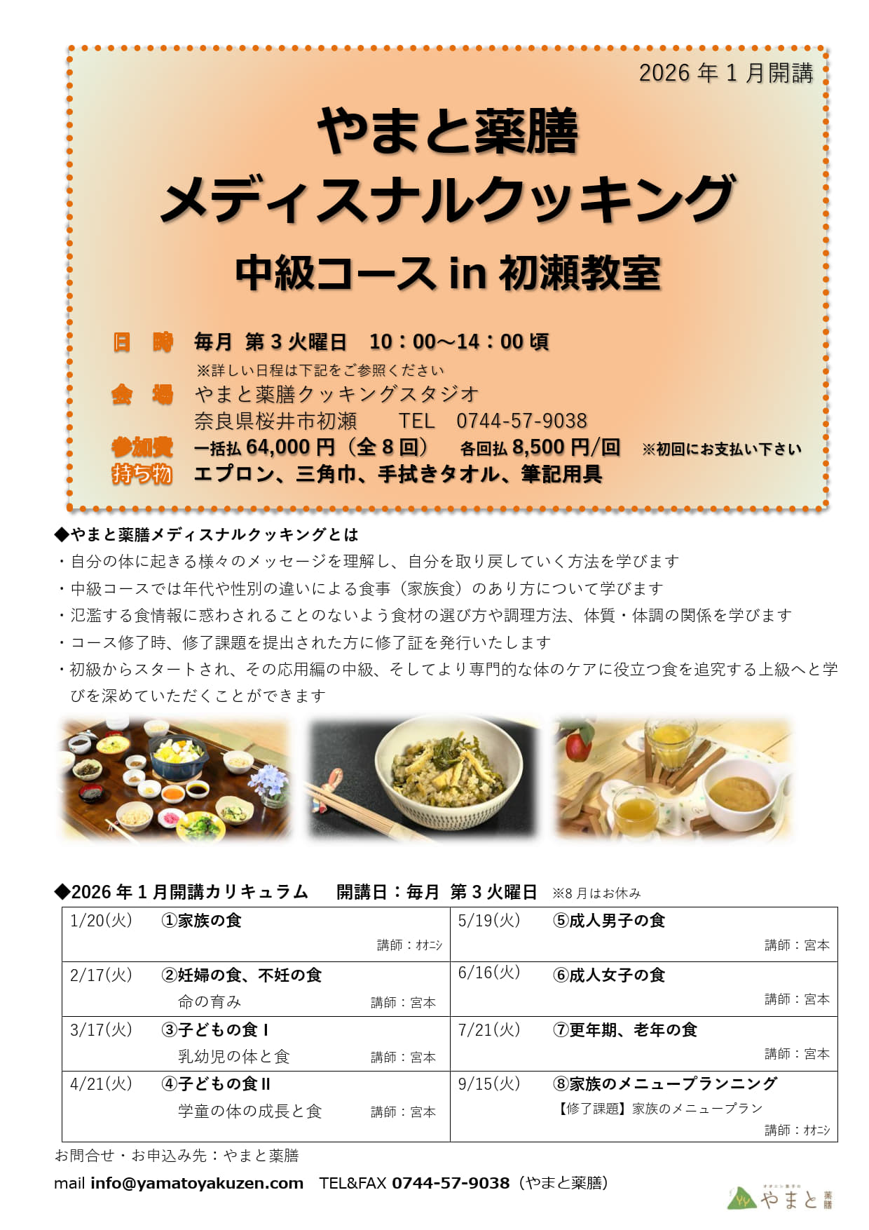 ***2026年1月初瀬(奈良県)で新規開講 ** メディスナルクッキング〜中級〜